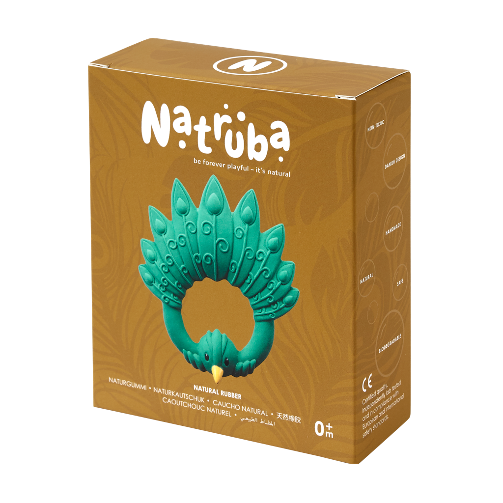 Le beau et gracieux paon est maintenant un jouet étonnant pour le jeu sensoriel, la mastication et l'heure du bain. Le paon Natruba est facile à saisir pour les petites mains avec différentes surfaces pour encourager le jeu sensoriel et le caoutchouc naturel souple satisfait facilement toutes les étapes des gencives douloureuses. L'heure de la dentition et du bain est devenue si belle !