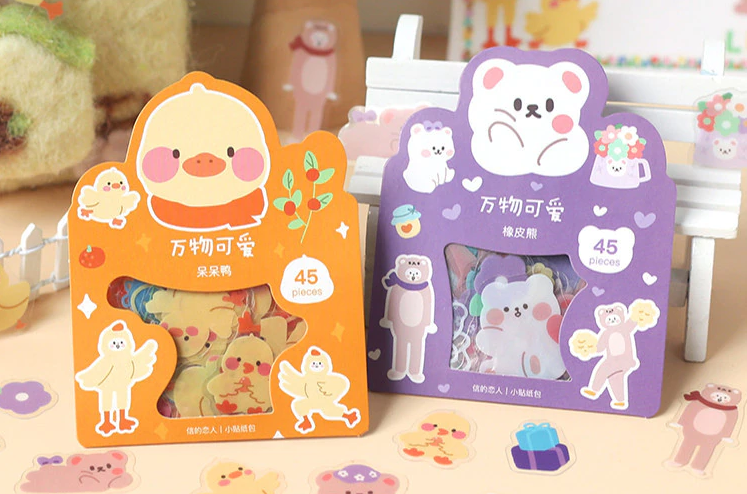 Pack de 45 stickers canard jaune.